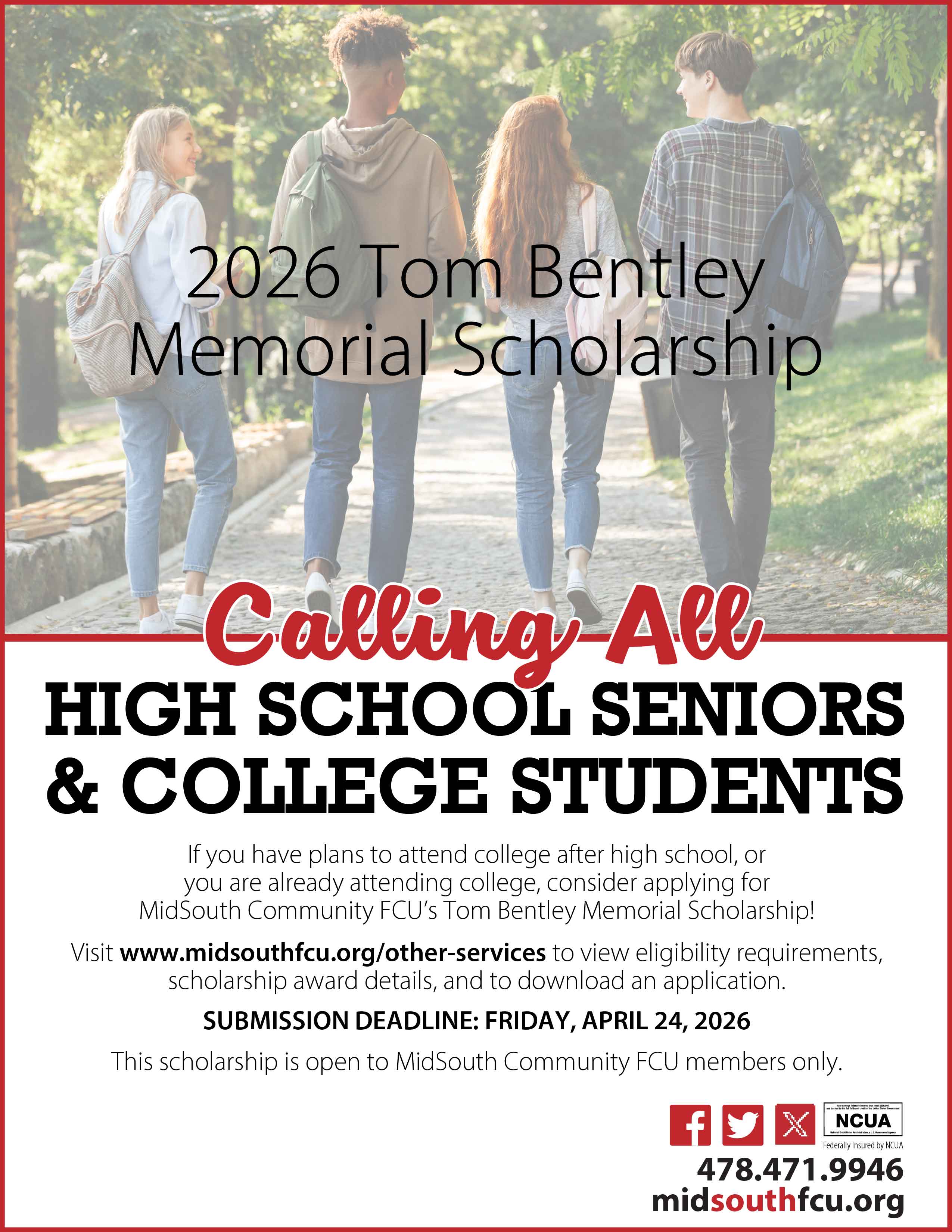- (Deadline 4.24.2026) Tom Bentley Memorial Scholarship MidSouthFCU